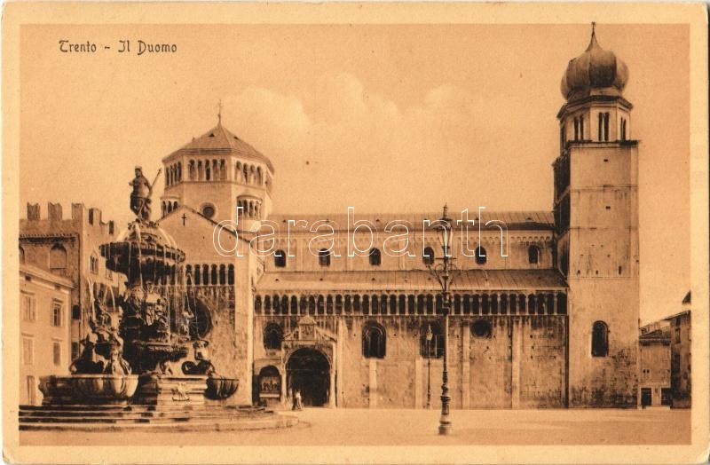 Trento, Trient (Südtirol); Il Duomo / cathedral, fountain. Giuseppe Maule<a href="https://www.darabanth.com/hu/gyorsarveres/417/kategoriak~Kepeslapok/Olaszorszag~1500073/Trento-Trient-Sudtirol-Il-Duomo-cathedral-fountain-Giuseppe-Maule~II2151576/?ut