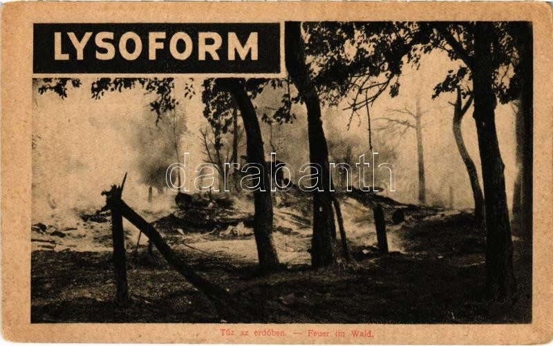 Tűz az erdőben. A Képes Újság felvételei. Lysoform fertőtlenítő reklám / Feuer im Wald / WWI Austro-Hungarian K.u.K. military, fire in the forest. Lysoform disinfectant advertisement (EK)