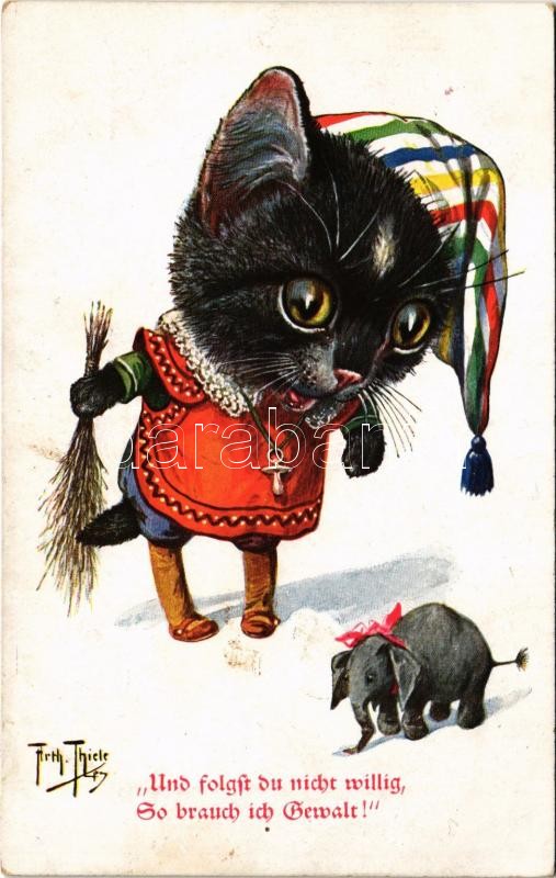 Und folgst du nicht willig, So brauch ich Gewalt! / Kis macska játék elefánttal / Cat with toy elephant. T.S.N. Serie 1425. s: Arthur Thiele<a href="https://www.darabanth.com/hu/nagyaukcio/38/kategoriak~Kepeslapok/Macska~15726/Und-folgst-du-nicht-wi