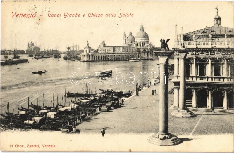 Venezia, Venice; Canal Grande e Chiesa della Salute / Grand Canal, church, basilica, boats. Giov. Zanetti 13.<a href="https://www.darabanth.com/hu/gyorsarveres/417/kategoriak~Kepeslapok/Olaszorszag~1500073/Venezia-Venice-Canal-Grande-e-Chiesa-della-