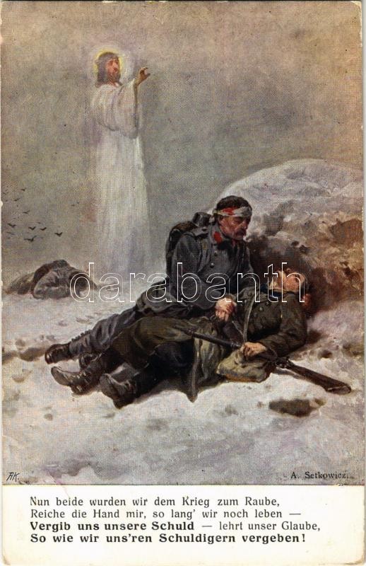 Vergib uns unsere Schuld… / WWI Austro-Hungarian K.u.K. military art postcard, dying soldiers’ prayer s: A. Setkowicz (EK)<a href="https://www.darabanth.com/hu/gyorsarveres/415/kategoriak~Kepeslapok/Katonai~1000067/Vergib-uns-unsere-Schuld-WWI-Aus