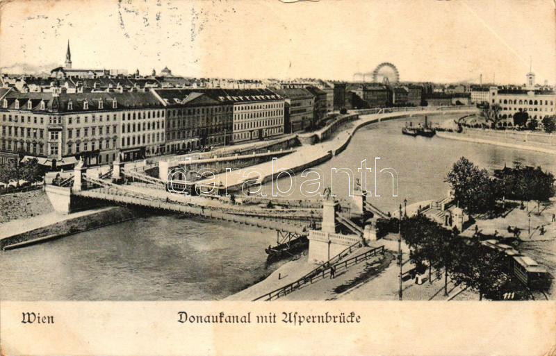 Vienna, Wien; Donaukanal mit Aspernbrücke / Danube, Aspern bridge, tram (EK)<a href="https://www.darabanth.com/hu/gyorsarveres/413/kategoriak~Kepeslapok/Ausztria~2000017/Vienna-Wien-Donaukanal-mit-Aspernbrucke-Danube-Aspern-bridge-tram-EK~II1266460/
