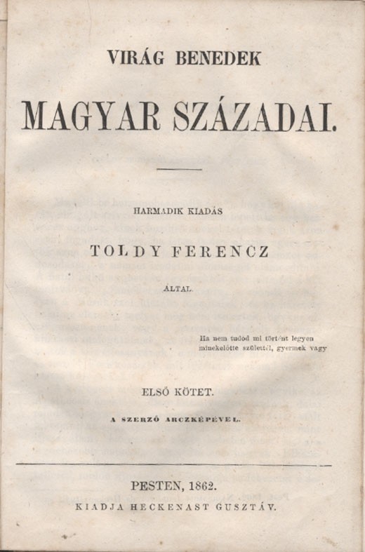 Virág Benedek Virág Benedek magyar századai. Harmadik kiadás Toldy Ferenc által. I-V. kötet, két kötetbe kötve.
