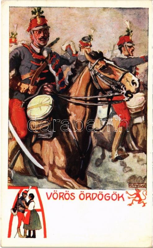 Vörös ördögök (huszárok) / WWI Austro-Hungarian K.u.K. military art postcard, hussars. Rotophot Budapest Nr. 668. s: K. A. Wilke (EK)
