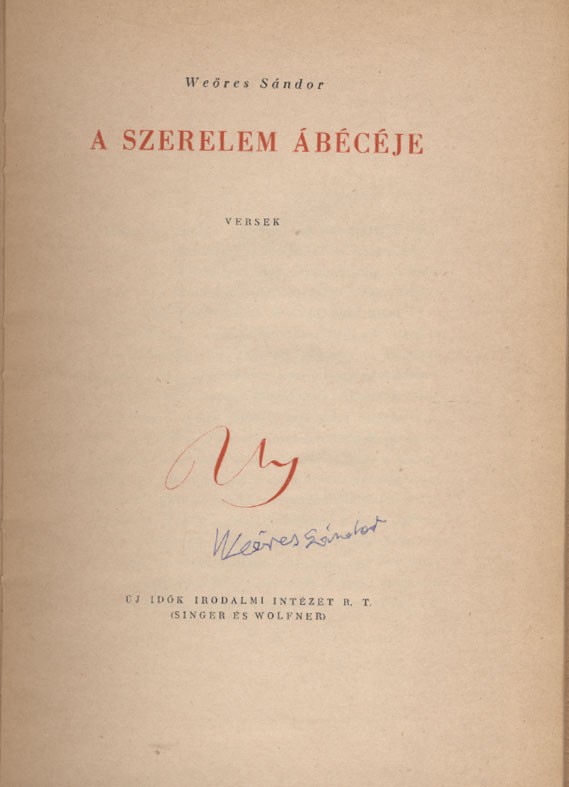 Weöres Sándor Weöres Sándor: A szerelem ábécéje. Versek. Első kiadás. Aláírt példány.