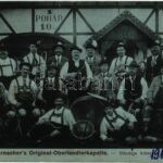 Westernacher’s Original-Oberlandlerkapelle – Ständige Adresse: Fürth. i. B. / Tyrolean msuic band ‘Üdvözlet Angolpark 1911 Budapest’ – 1 pohár 10 korona (Rb)