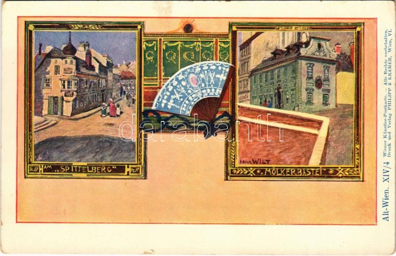 Wien, Vienna, Bécs; Alt-Wien, Am Spittelberg, Mölkerbastei. Wiener Künstler Postkarte Philipp & Kramer XIV/4. Art Nouveau s: Hans Wilt (EK)