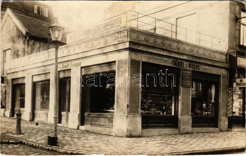 Wien, Vienna, Bécs XIX. Döbling, Peter Jordan Strasse, Karl Wölfl, Drogerie, Heim-Radioempfangsapparate, Elektrischen-, Licht- und Kraft Anlagen / street view, radio and electric shop, drugstore. photo