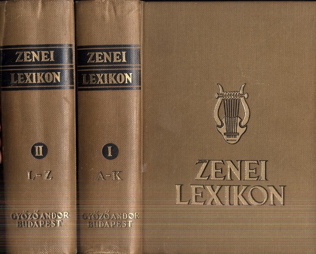 Zenei lexikon. Zenei lexikon. A zenetörténet és zenetudomány enciklopédiája. Szerk. Szabolcsi Bence és Tóth Aladár. Második, bőv. kiad. I-II. kötet.