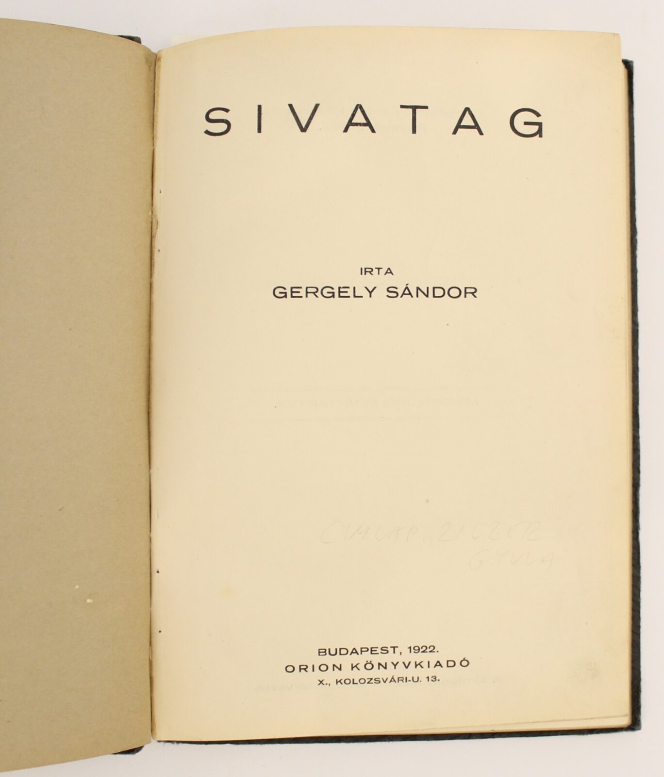 Zilzer Gyula címlapjával Gergely Sándor: Sivatag, Orion, 1922