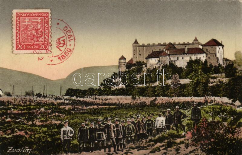 Zólyom, Zvolen; vár, katonák / castle, soldiers (ázott / wet damage)<a href="https://www.darabanth.com/hu/gyorsarveres/440/kategoriak~Kepeslapok/Felvidek~2000006/Zolyom-Zvolen-var-katonak-castle-soldiers-azott-wet-damage~II1115362/?utm_source=affili
