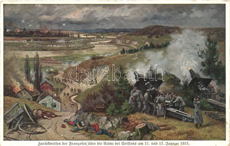 Zurückwerfen der Franzosen über die Visne bei Goissons / WWI French-German battle, cannons<a href="https://www.darabanth.com/hu/gyorsarveres/415/kategoriak~Kepeslapok/Katonai~1000067/Zuruckwerfen-der-Franzosen-uber-die-Visne-bei-Goissons-WWI-French-