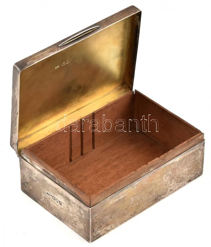 1901 Ezüst (Ag.) ‘Oesterreichischer Automobil-Club Bergfahrt Schottwien-Semmerling 22. September 1901 Kategorie III. II. Preis’ feliratú dobozka, fa betéttel és aljjal, jelzett (1901 London), a fa betét és alj kijár, nettó: 156 gr., 8×11,5×4,5 cm<a