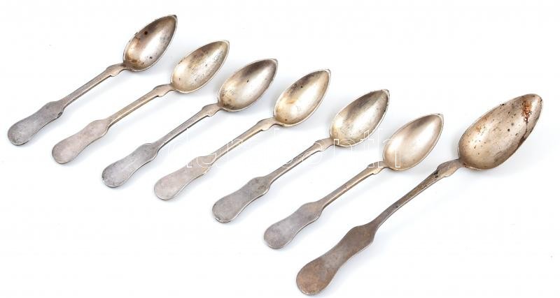 6 + 1 db ezüst mokkás és kiskanál készlet. Jelzett, össz 95 g