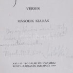 19761. tétel:Gáti József: A versmondás. (Dedikált!) Bp., 1965, Gondolat, 402+(2) p. Első kiadás. Kiadói egészvászon-kötés, a könyv végén kissé sérült lapszélekkel. Kiadói kartontokban, 2 db hanglemez-melléklettel. (1965-ben az egyik első olyan könyv volt, amelyhez hanglemezt mellékeltek). Megjelent 3300 példányban. A szerző, Gáti József (1915-1998) Aase-díjas színész, tanár, érdemes és kiváló művész által dedikált példány.