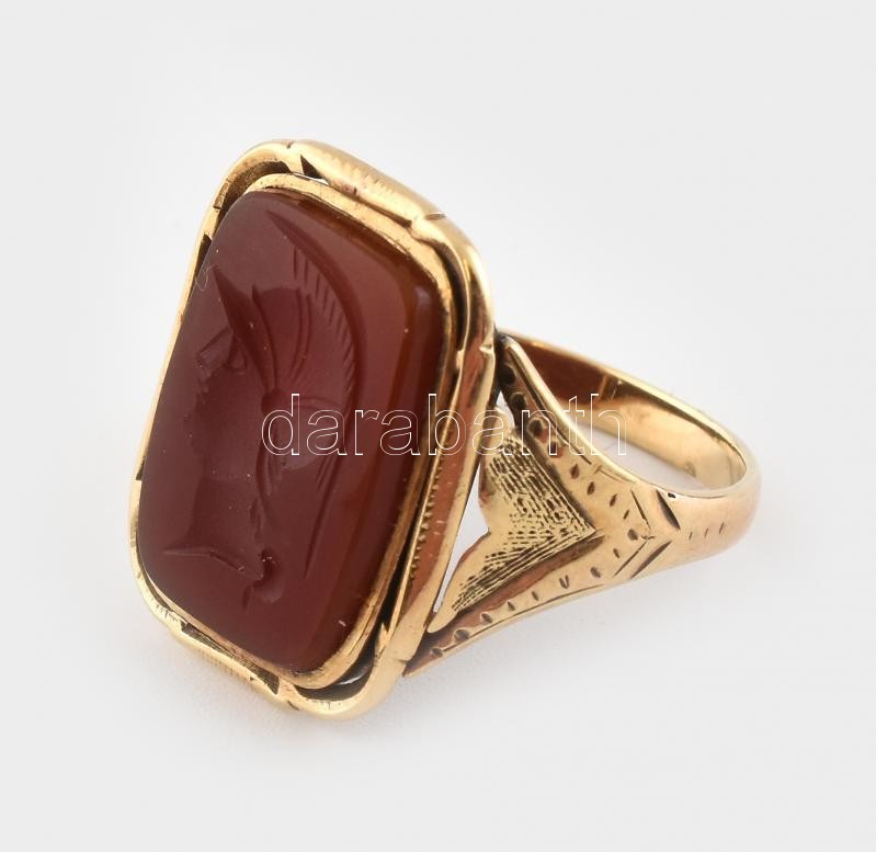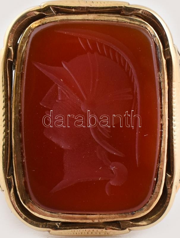 Arany (Au/14k) Férfi pecsétgyűrű, cameával ékítve, bruttó: 6,42g, m:61, jelzett.<a href="https://www.darabanth.com/hu/gyorsarveres/412/kategoriak~Nemesfem-Disztargyak-Orak-es-Ekszerek/Nemesfem-Disztargyak-Orak-es-Ekszerek~500031/Arany-Au14k-Ferfi-pe