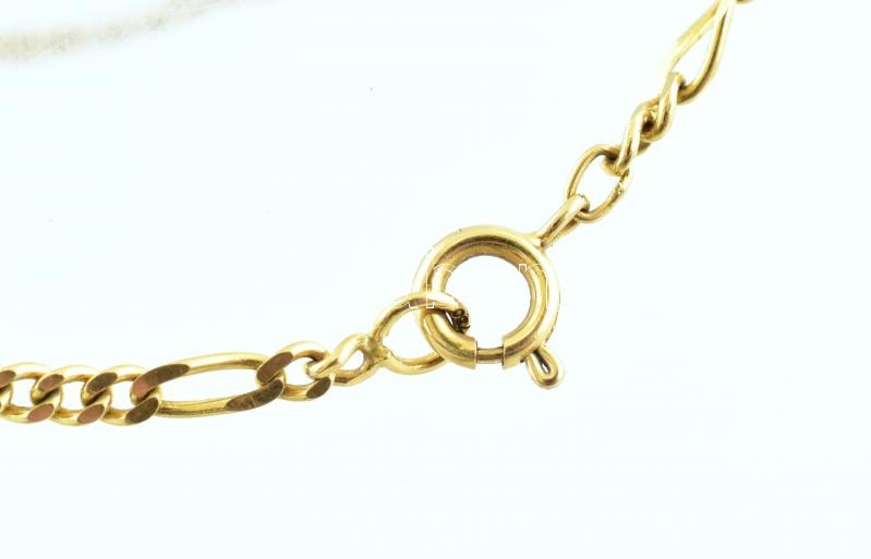 Arany (Au) 14K figaro karkötő, jelzett, h: 17 cm, nettó: 3,26 g<a href="https://www.darabanth.com/hu/gyorsarveres/412/kategoriak~Nemesfem-Disztargyak-Orak-es-Ekszerek/Nemesfem-Disztargyak-Orak-es-Ekszerek~500031/Arany-Au-14K-figaro-karkoto-jelzett-h