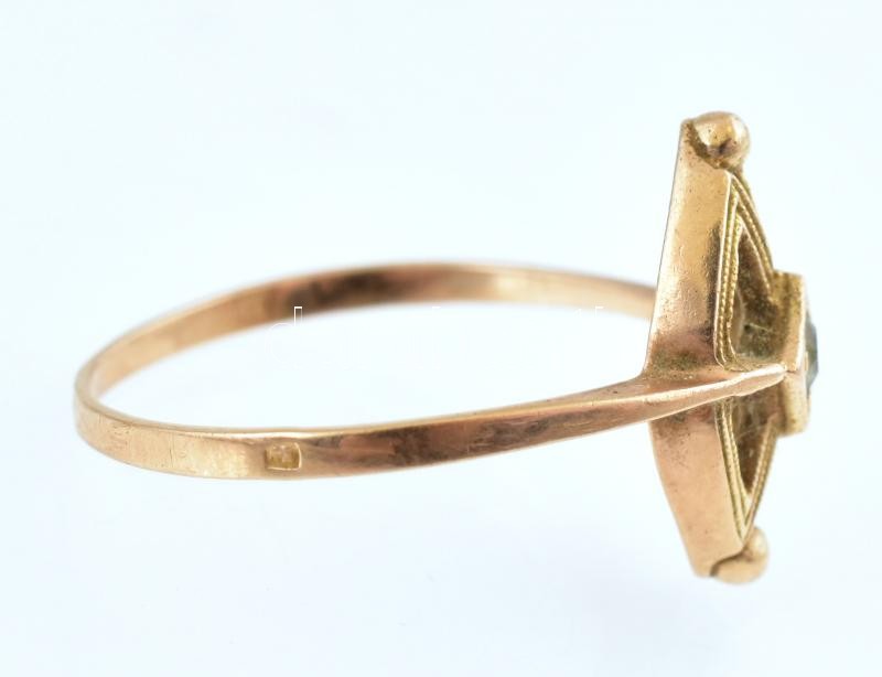 Arany (Au) 14K gyűrű kővel, jelzett, méret: 59, bruttó: 1,81 g<a href="https://www.darabanth.com/hu/gyorsarveres/412/kategoriak~Nemesfem-Disztargyak-Orak-es-Ekszerek/Nemesfem-Disztargyak-Orak-es-Ekszerek~500031/Arany-Au-14K-gyuru-kovel-jelzett-meret