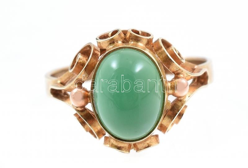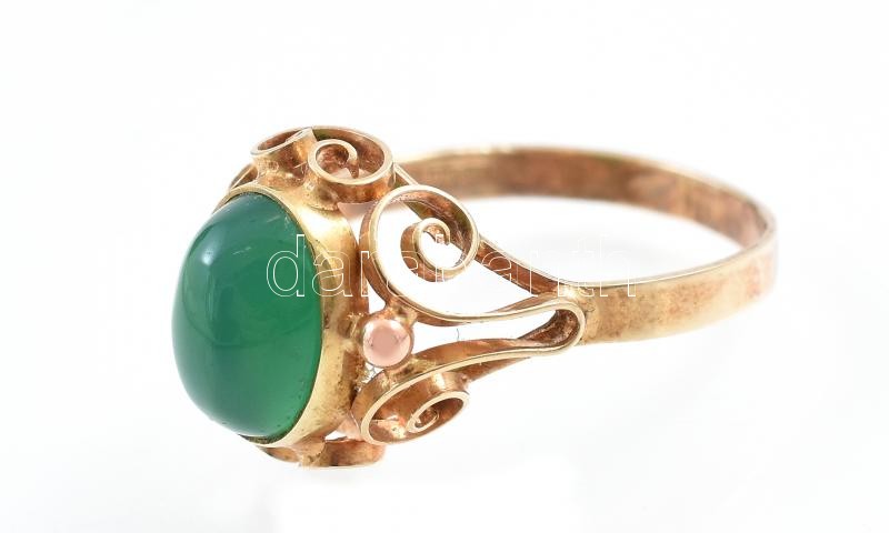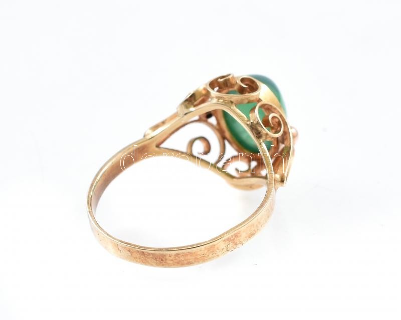Arany (Au) 14K zöld köves gyűrű, jelzett, méret: 51, bruttó: 2,1 g<a href="https://www.darabanth.com/hu/gyorsarveres/420/kategoriak~Nemesfem-disztargyak-ekszerek-dragakovek/Nemesfem-disztargyak-ekszerek-dragakovek~2000023/Arany-Au-14K-zold-koves-gyu
