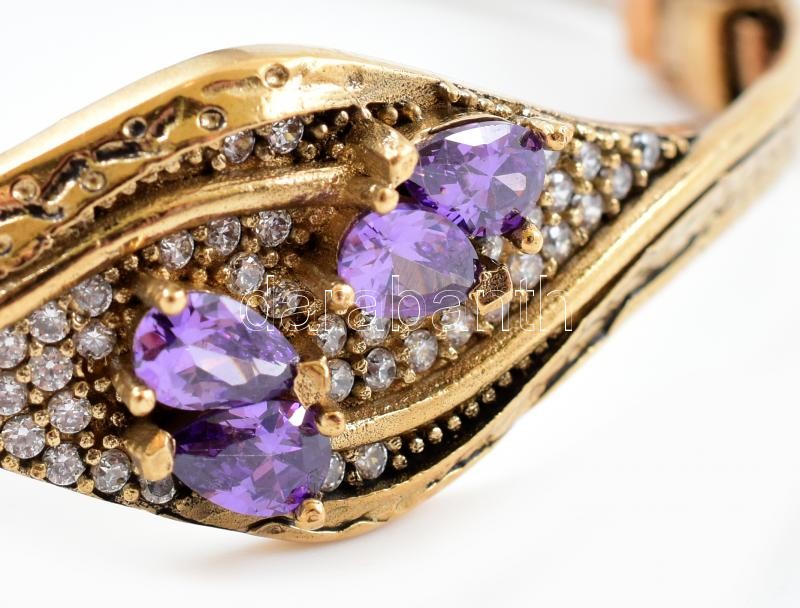 Aranyozott ezüst(Ag) karperec, kövekkel gazdagon kirakva, jelzett, bruttó: 15,4 g