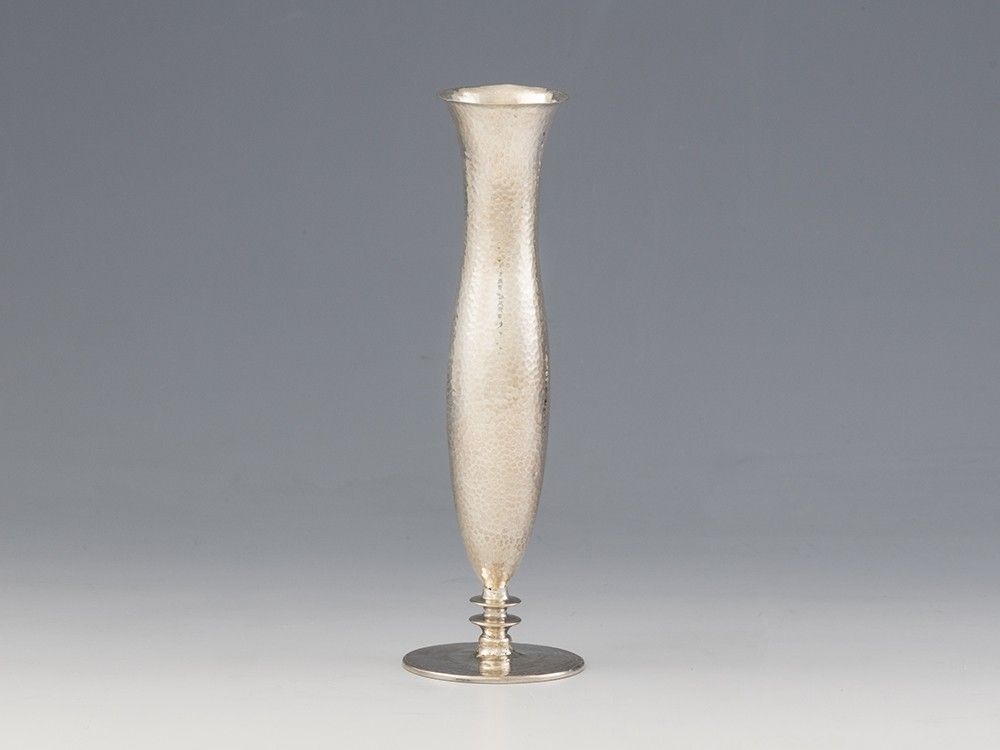 Kikiáltási ár: 25 000 FtEzüst, 38 g. Áttört, szecessziós virágokkal díszített foglalatban fúvott és csiszolt, színtelen üvegbetétek. Jelzett: 800-as fémfinomsági-, valamint 1902 utáni pesti behozatali jellel. Német, 1900 körül. M.: 10,5 × 4,5 × 11 cm