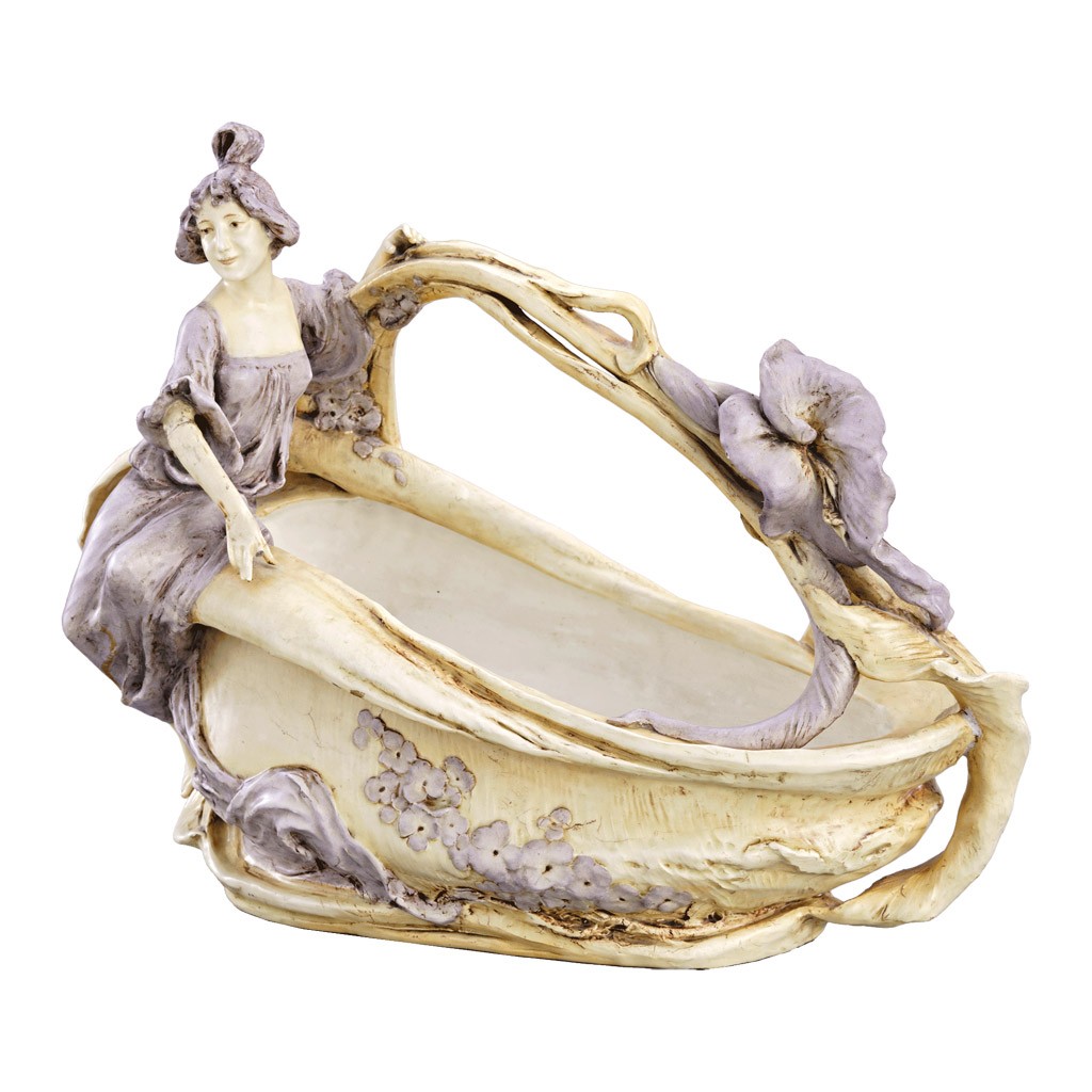 osztrák, 1900 körül, festett porcelánfajansz, jelezve a hátoldalán: Ernst Wahlics, sérült