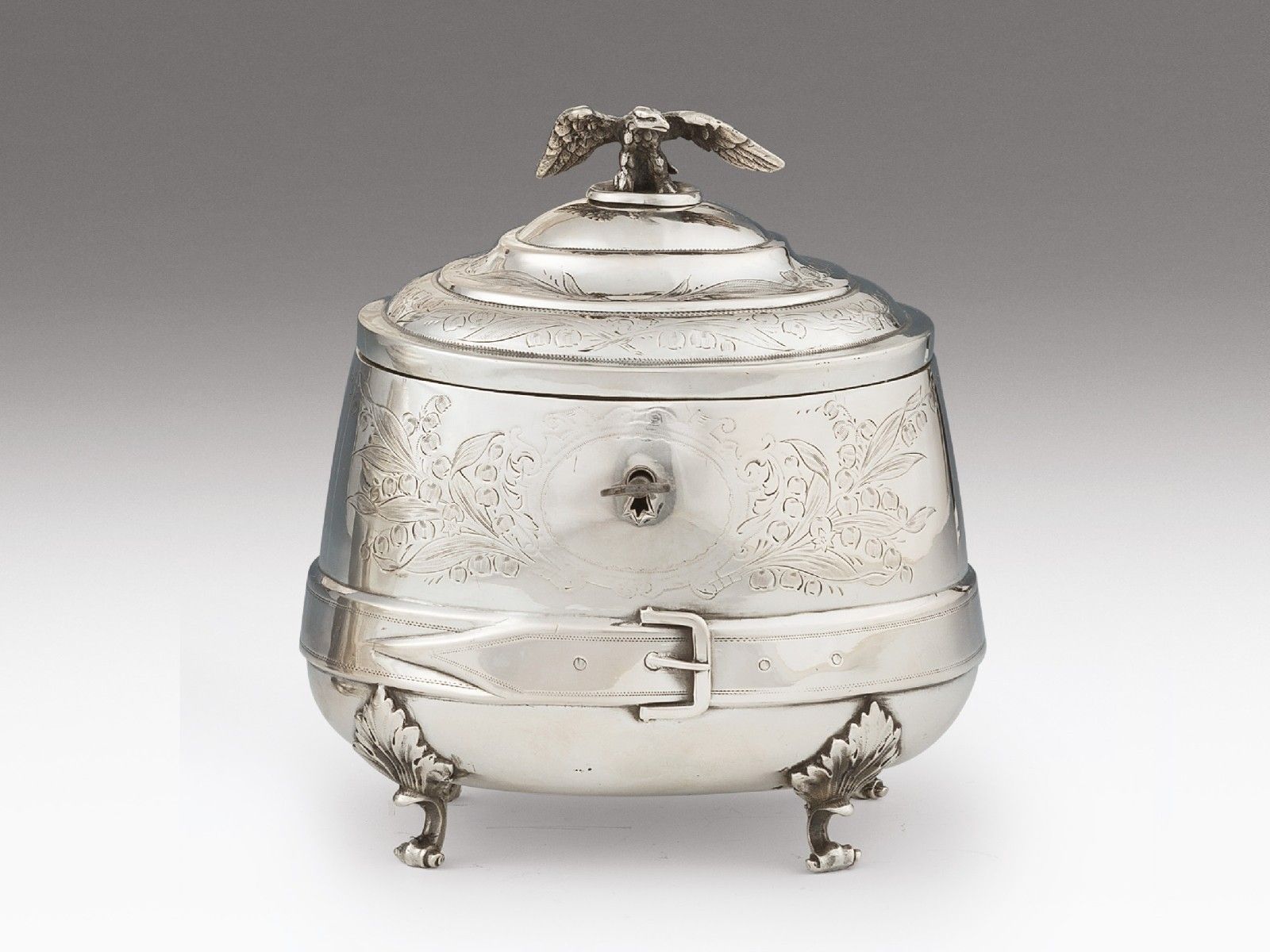 Bécsi historizáló cukordoboz, ezüst, 367 g.