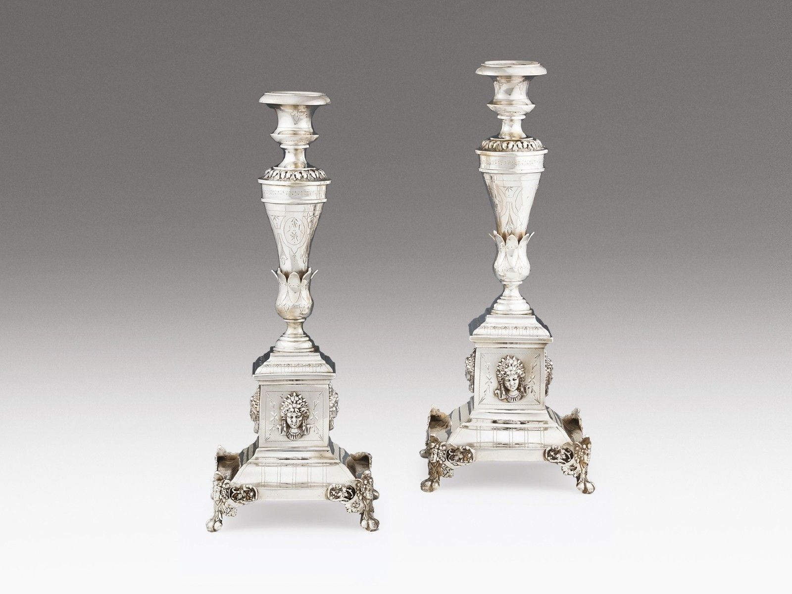 Bécsi historizáló gyertyatartó-pár, ezüst, 1354 g.