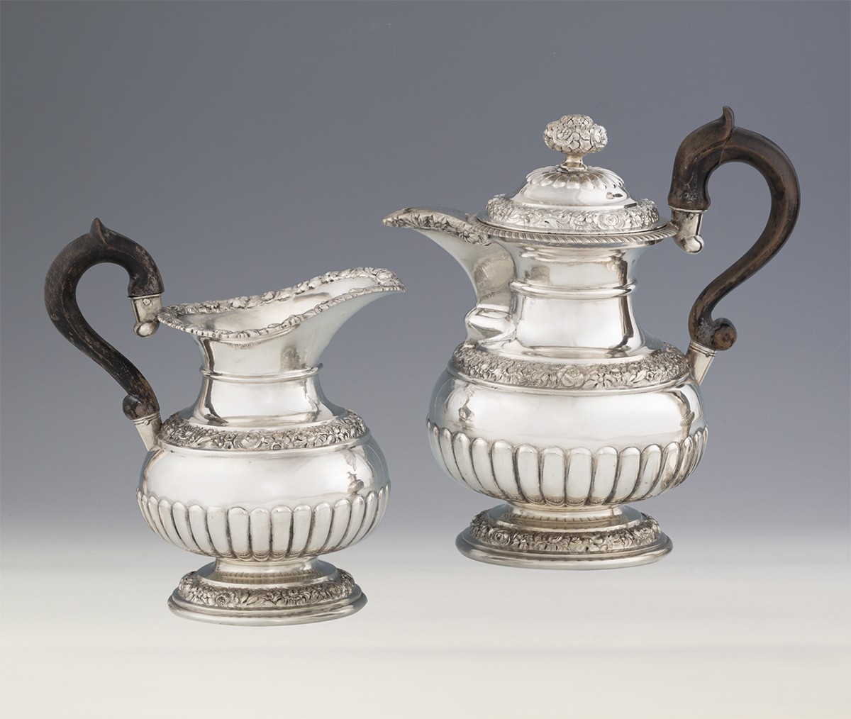 Biedermeier kávéskanna tejkiöntővel , Bécs, 1833-34.
