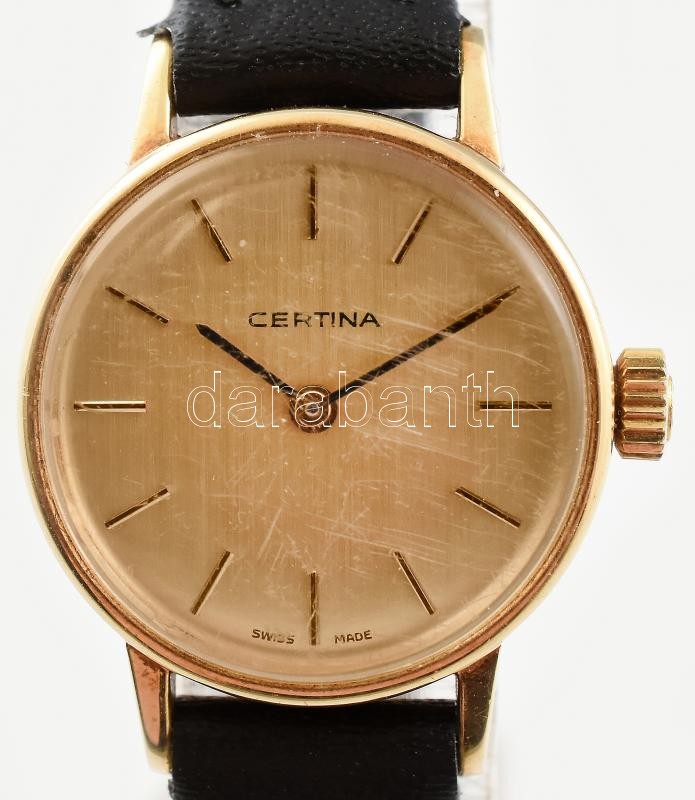 Certina 14K arany (Au) női karóra, kézi felhúzós szerkezettel, működik, jelzett., eredeti koronával d: 20 mm<a href="https://www.darabanth.com/hu/gyorsarveres/417/kategoriak~Nemesfem-disztargyak-ekszerek-dragakovek/Nemesfem-disztargyak-ekszerek-drag