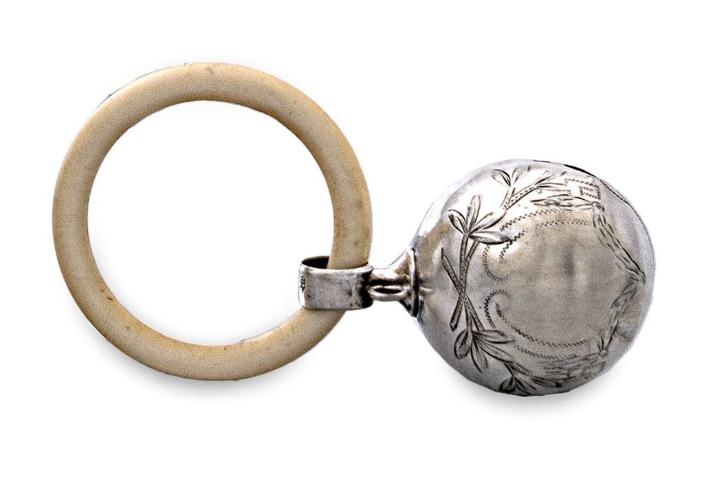 német, 1888 utáni fémjel, 1902-1922 közötti bécsi behozatali jellel, 800 ezrelékes ezüst gömb, F/M jelzettel, vésett díszítéssel, kaucsuk gyűrűvel, kis sérüléssel, Btto: 19,2 g; h: 9 cm