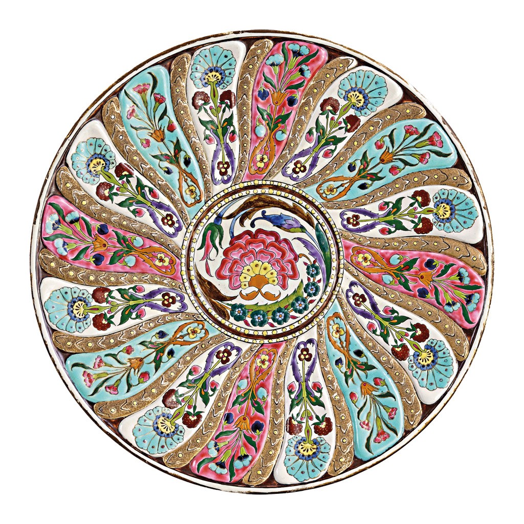 Fischer Ignác, Budapest, 1890 körül, festett, aranyozott fehércserép, plasztikus díszítéssel, jelezve az alján: masszába nyomott Fischer I. Budapest, formaszám: 365