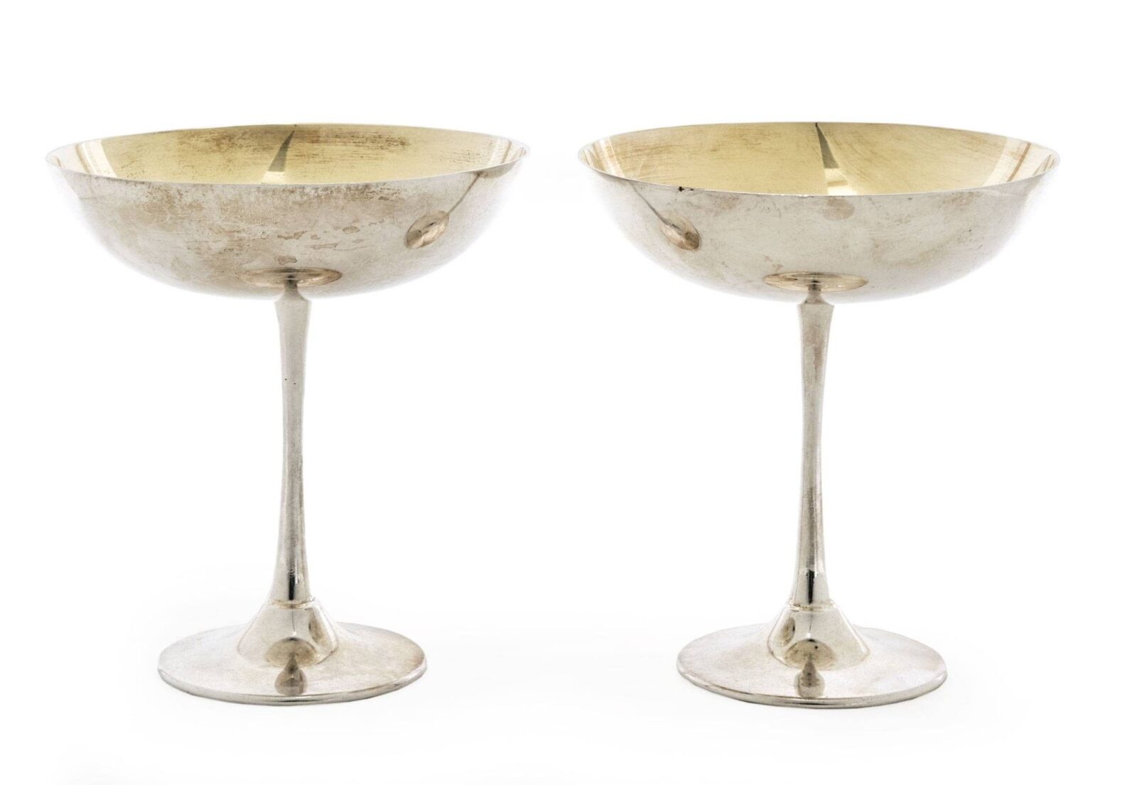 olasz, 20. század első fele, 800 ezrelékes ezüst, mesterjeggyel, talpas edénytest, aranyozott belső résszel, m: 11,5 cm, 316 g