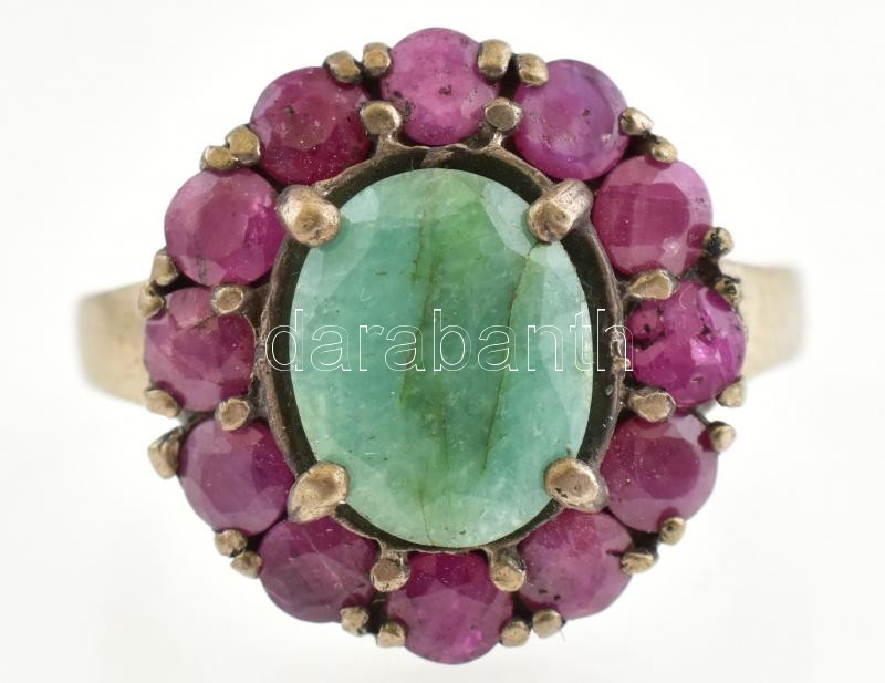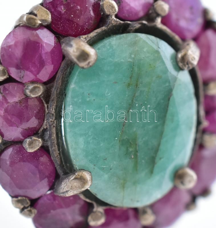 Ezüst (Ag/925) Női gyűrű törmelék smaragddal és rubinnal ékítve. br:5,25g, m:57, jelzett<a href="https://www.darabanth.com/hu/gyorsarveres/412/kategoriak~Nemesfem-Disztargyak-Orak-es-Ekszerek/Nemesfem-Disztargyak-Orak-es-Ekszerek~500031/Ezust-Ag925-