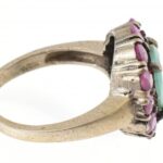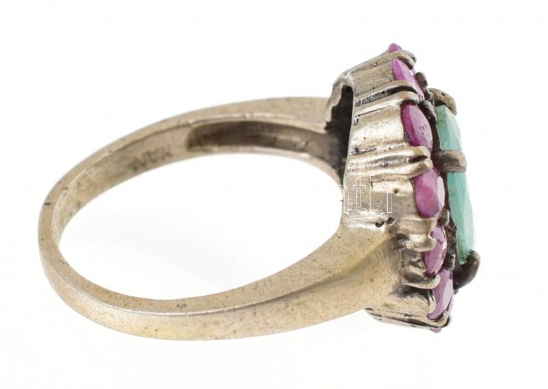 Ezüst (Ag/925) Női gyűrű törmelék smaragddal és rubinnal ékítve. br:5,25g, m:57, jelzett