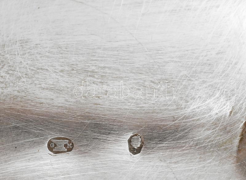 Ezüst (Ag) art deco tálca jelzett, dianás jelzéssel, mesterjegyes GTM 437 g d:29 cm