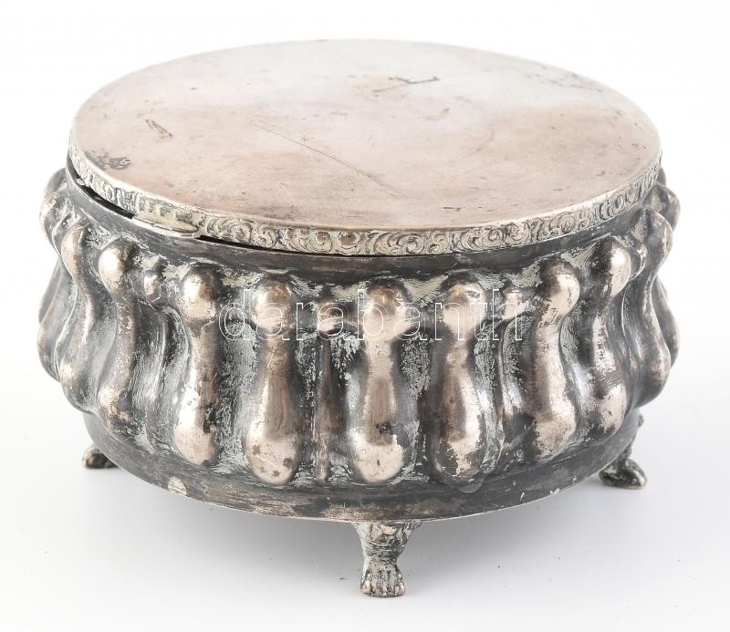 Ezüst (Ag) cukordoboz, jelzett, nettó: 206g, d: 11cm<a href="https://www.darabanth.com/hu/gyorsarveres/412/kategoriak~Nemesfem-Disztargyak-Orak-es-Ekszerek/Nemesfem-Disztargyak-Orak-es-Ekszerek~500031/Ezust-Ag-cukordoboz-jelzett-netto-206g-d-11cm~II
