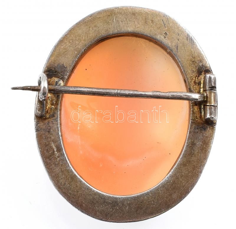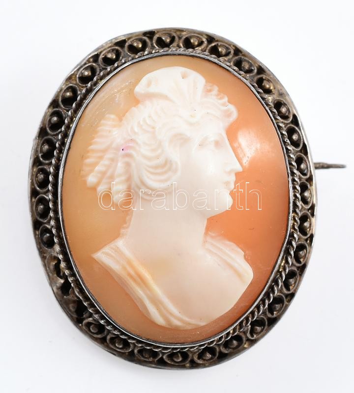 Ezüst (Ag) foglalatban camea bross, jelzett, 3×2,5cm, bruttó:8,96g