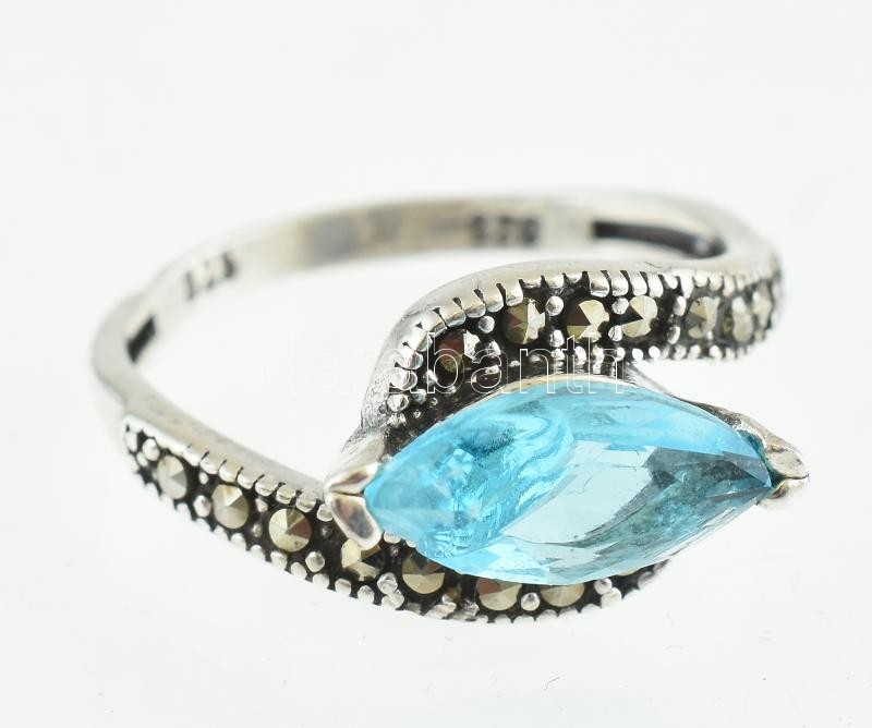 Ezüst (Ag) gyűrű, kék kővel, jelzett, méret: 57, alul az íven öntési hibával, bruttó: 2,92 g<a href="https://www.darabanth.com/hu/gyorsarveres/411/kategoriak~Nemesfem-Disztargyak-Orak-es-Ekszerek/Nemesfem-Disztargyak-Orak-es-Ekszerek~505031/Ezust-Ag