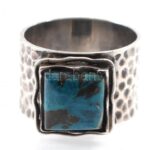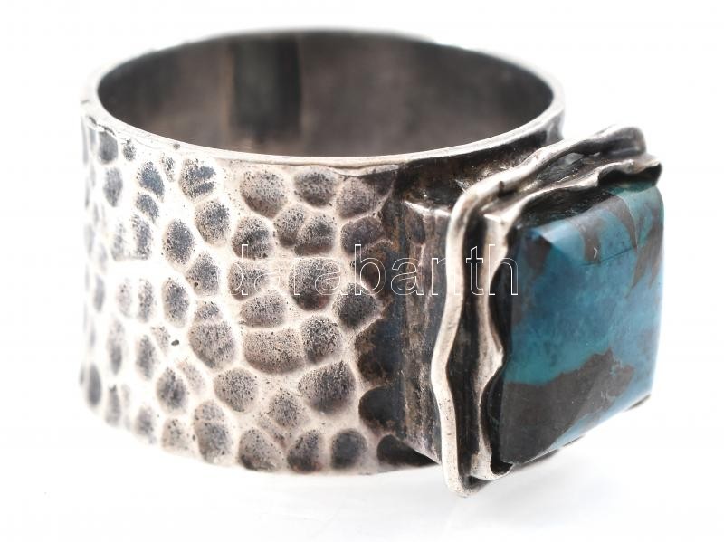 Ezüst (Ag) gyűrű türkizzel, m: 58 jelzett, bruttó:7,9g