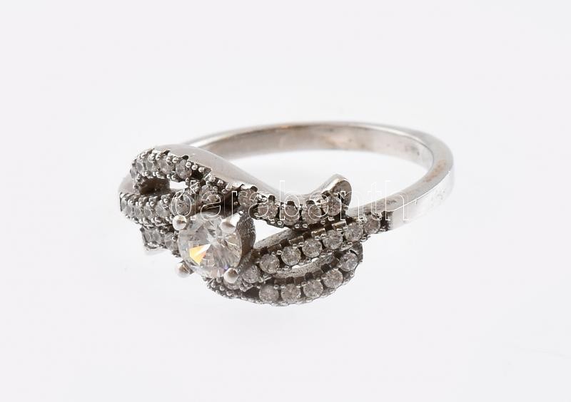 Ezüst (Ag) kövekkel ékített női gyűrű, jelzett, m:54, bruttó: 3,2g