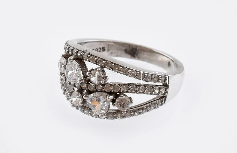 Ezüst (Ag) kövekkel ékített női gyűrű, jelzett, m:55, bruttó: 4g