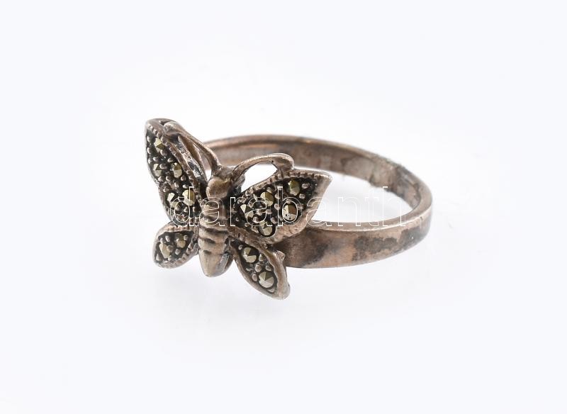 Ezüst (Ag) kövekkel ékített női gyűrű, pillangó motívummal, jelzett, m:57, bruttó: 3,6g<a href="https://www.darabanth.com/hu/gyorsarveres/412/kategoriak~Nemesfem-Disztargyak-Orak-es-Ekszerek/Nemesfem-Disztargyak-Orak-es-Ekszerek~500031/Ezust-Ag-kove