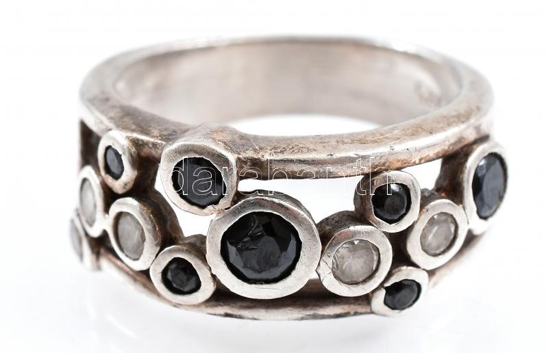 Ezüst (Ag) köves gyűrű, köveken apró lepattanás, jelzett, m: 55, bruttó: 6,6g<a href="https://www.darabanth.com/hu/gyorsarveres/420/kategoriak~Nemesfem-disztargyak-ekszerek-dragakovek/Nemesfem-disztargyak-ekszerek-dragakovek~2000023/Ezust-Ag-koves-g