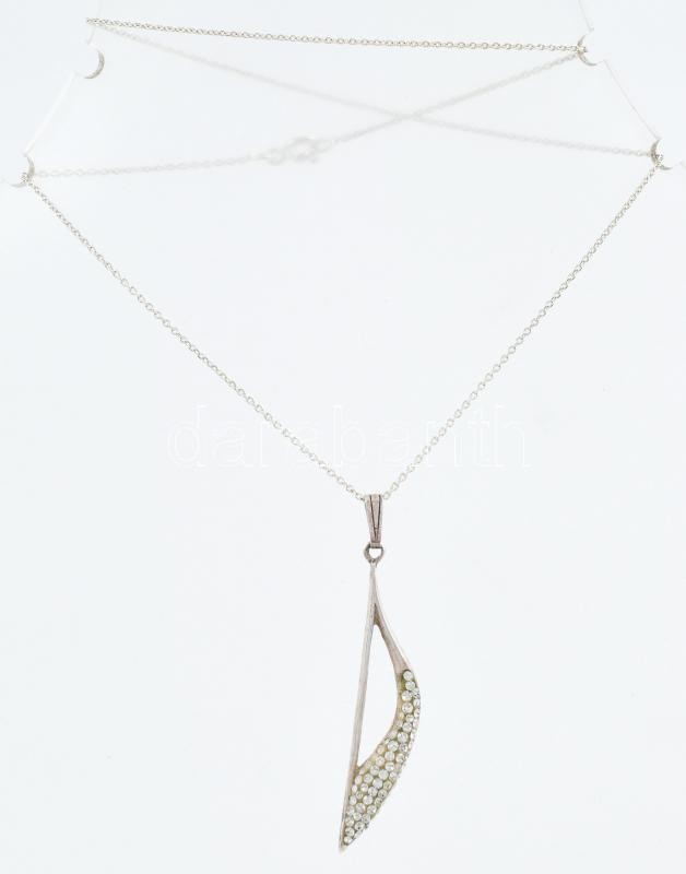 Ezüst (Ag) lánc apró köves medállal, jelzett, bruttó: 4 g, h: 39,5 cm