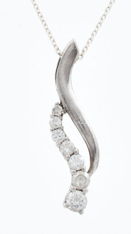 Ezüst (Ag) lánc köves medállal, jelzett, bruttó: 3,4 g, h: 39,5 cm
