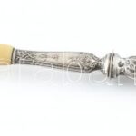 Ezüst (Ag) nyelű salátás villa, jelzett, h:29cm, bruttó: 60g<a href="https://www.darabanth.com/hu/gyorsarveres/416/kategoriak~Nemesfem-disztargyak-ekszerek-dragakovek/Nemesfem-disztargyak-ekszerek-dragakovek~500031/Ezust-Ag-nyelu-salatas-villa-jelze
