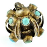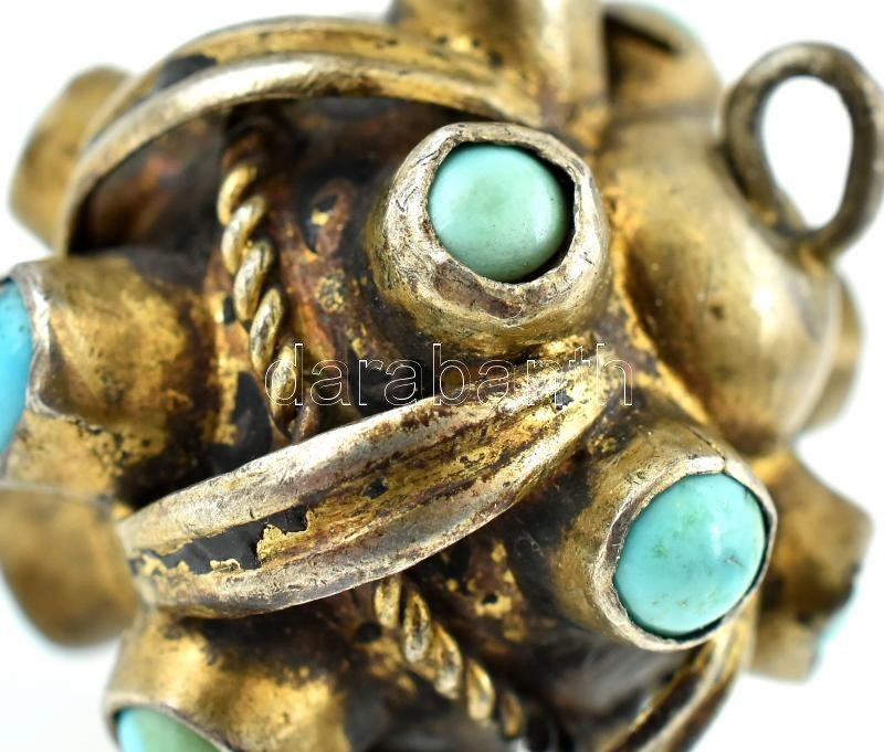 Ezüst (Ag) Pitykegomb türkizekkel ékítve, jelzés nélkül, kopásnyomokkal, bruttó:8,2g, cca.3cm<a href="https://www.darabanth.com/hu/gyorsarveres/411/kategoriak~Nemesfem-Disztargyak-Orak-es-Ekszerek/Nemesfem-Disztargyak-Orak-es-Ekszerek~505031/Ezust-A