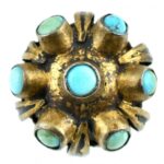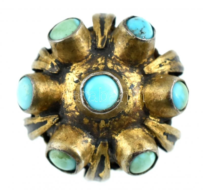 Ezüst (Ag) Pitykegomb türkizekkel ékítve, jelzés nélkül, kopásnyomokkal, bruttó:8,2g, cca.3cm