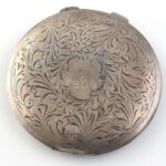 Ezüst (Ag) pudrié, fém betéttel. br 120 g d:7,5 cm<a href="https://www.darabanth.com/hu/gyorsarveres/411/kategoriak~Nemesfem-Disztargyak-Orak-es-Ekszerek/Nemesfem-Disztargyak-Orak-es-Ekszerek~505031/Ezust-Ag-pudrie-fem-betettel-br-120-g-d7-5-cm~II25
